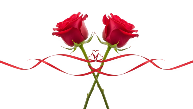 Valentine day vibrant red roses with green leaves and scattered petals creating a romantic atmosphere high-key lighting with cutout object
