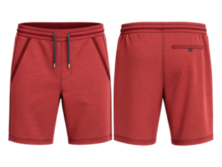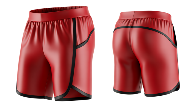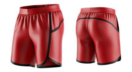 Red athletic shorts front and back view isolated PNG on transparent background