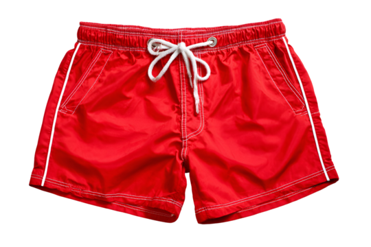Red shorts isolated on transparent background: modern summer fashion for men