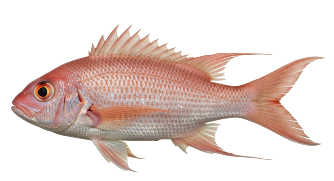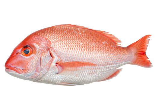 Isolated Red Snapper in Full Profile View, Marine Fish with Fins, Scales, and Yellow Eye