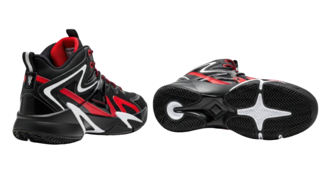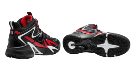 Pair of black and red athletic shoes isolated PNG with Transparent Background