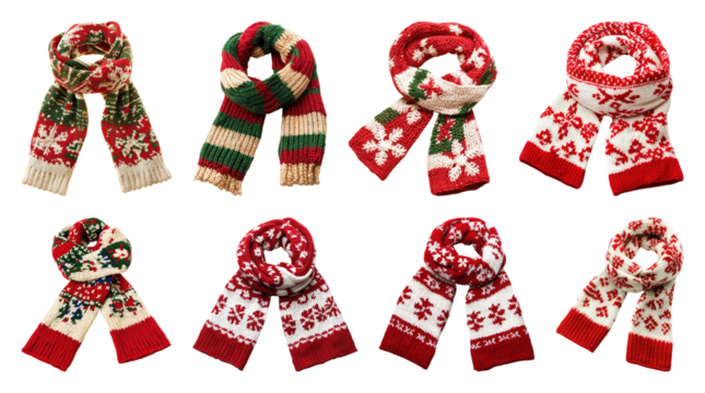PNG Festive knitted Christmas sweaters collection, element set on transparent background