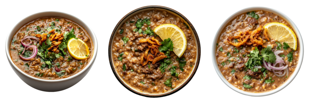 Lentil soup bowl isolated on a transparent background perfect for food-themed illustrations or culinary designs.