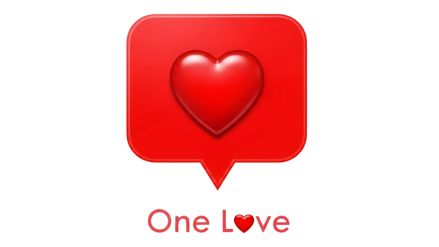 Red speech bubble with heart and One Love text isolated on a transparent background