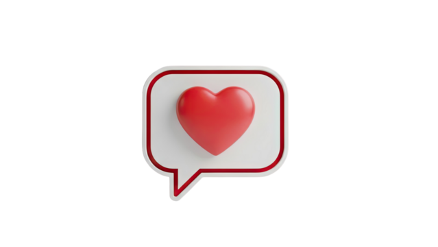 3D red heart inside a speech bubble on transparent background