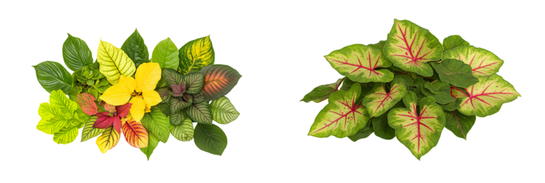 Caladium plants green leaves with red spots isolated on White or transparent background Cutout PNG