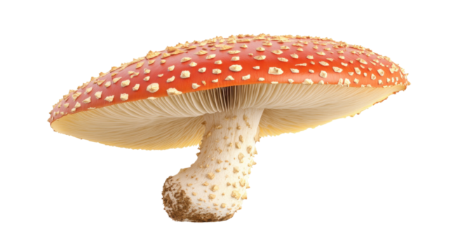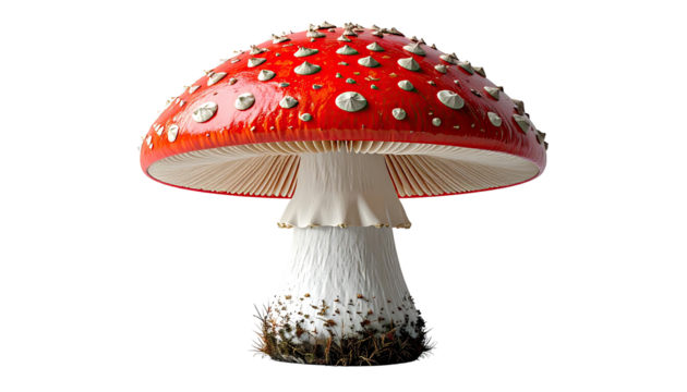 Red Amanita Muscaria Mushroom with White Spots Isolated on Transparent Background. Vibrant Red Fly Agaric Mushroom PNG.