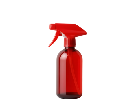 Red Spray Bottle With White Top. On a White or Clear Surface PNG Transparent Background.