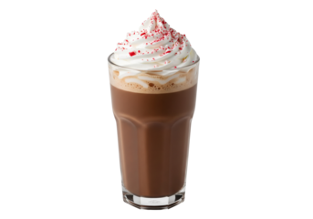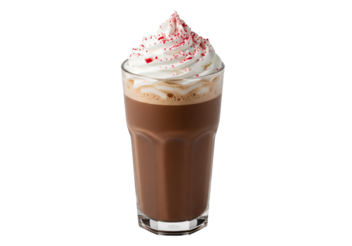 Sweet Peppermint Hot Chocolate with Whipped Cream and Festive Red Sprinkles Isolated on White