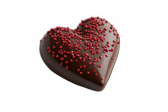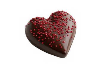 Chocolate heart candy with red sprinkles, valentine's day treat, sweet dessert, love symbol, food photography, isolated on transparent background