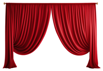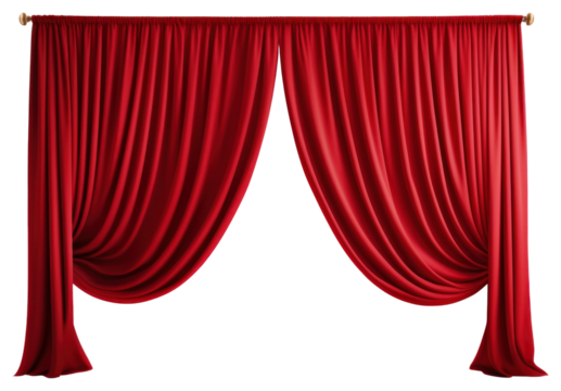 Stunning red curtain on transparent background for creative designs