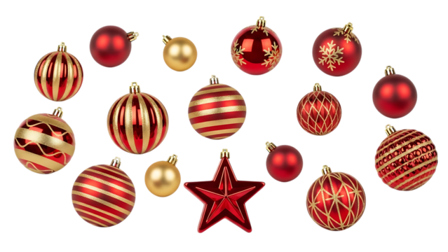 Festive christmas ornaments and ribbon isolated on transparent background, creating a cheerful and decorative arrangement for holiday celebrations and seasonal designs, adding a touch of elegance and
