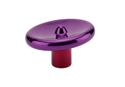 Glossy purple oval button with red stem isolated on black for design projects isolated on transparent background