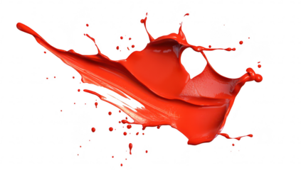 A dynamic splash of red liquid gracefully arcs through the air. capturing the essence of motion and energy. set against a pristine white background. ideal for creative design projects
