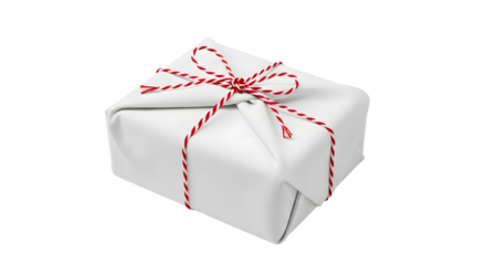 Gift - White gift box wrapped with red and white striped ribbon bow isolated on white background, perfect for holiday celebrations or special occasions