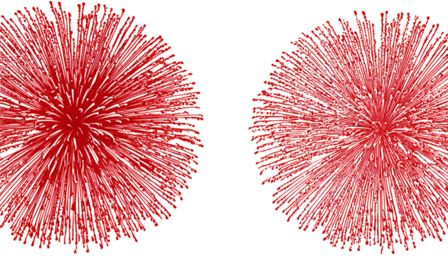 Two Red Fireworks Bursting isolated on a transparent background 1