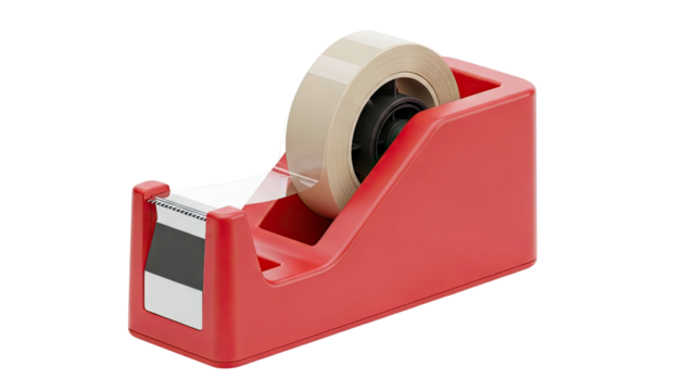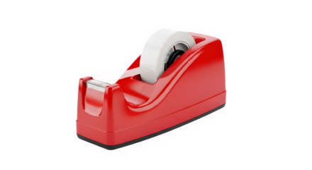 Bright red arrow unrolling from vibrant red tape, smooth and precise, pointing right, isolated on a transparent studio background with bright lighting, no shadows, commercial direction concept
