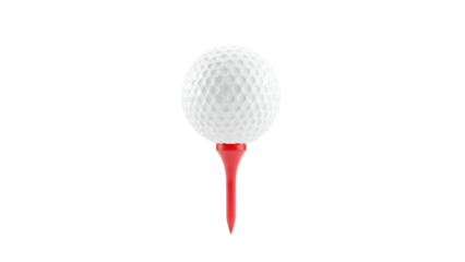 golf ball on red tee isolated on transparent background, cutout png file with white space around for easy post-production montage.