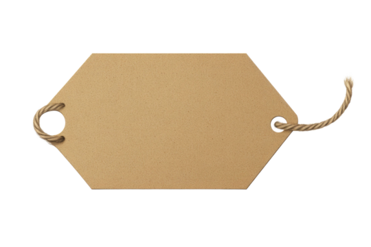 Blank cardboard price tag or label with thread isolated white background. PNG