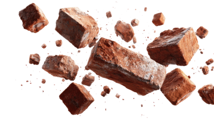 Floating Bricks and Small Pieces of Bricks isolated on transparent background Remove png, Clipping Path, pen tool