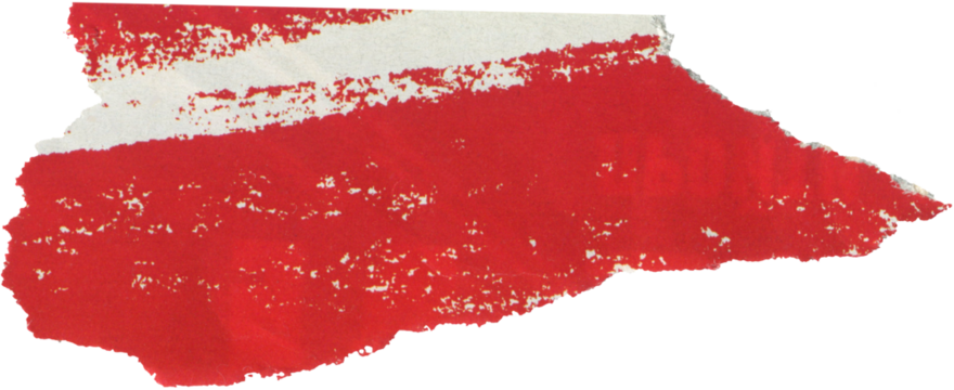 Crumpled and torn red paper. The paper has an irregular banner-like shape, with jagged edges and visible creases. Its texture appears rough