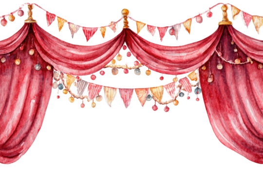 Watercolor stage curtain with festive decorations
