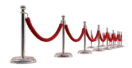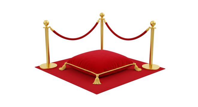 Elegant red carpet entrance with golden rope barrier on transparent background