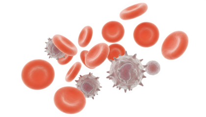 Transparent 3d illustration of covid-19 viruses and red blood cells