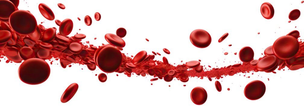 Flowing red blood cells isolated on transparent background, Blood circulation system in the human body, Microbiology concept