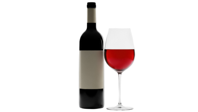 Red wine bottle and glass with transparent background