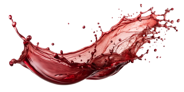 Splash of red wine or blood in various dynamic shapes, symbolizing movement and vitality, ideal for medical or criminal backgrounds