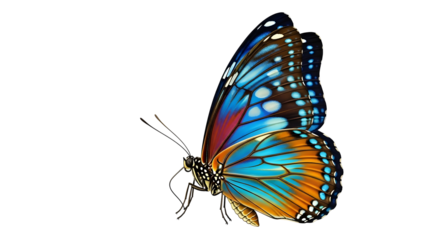 Realistic Photograph of a Vibrantly Colored Butterfly with Blue, Orange, and Red Wings on a Black Background
