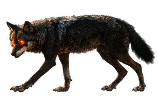 Fierce red wolf isolated on transparent background for wildlife illustrations, nature-themed designs, and animal graphics featuring majestic canine predators in high-quality PNG format