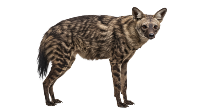 Cheerful woman in winter clothes pointing at blank red sign transparent