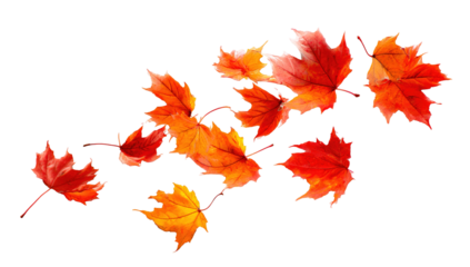 PNG Falling leaves, autumn foliage on transparent background. Overlay PNG file with red leaves flying from tree.