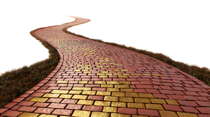 Winding brick road with yellow bricks leading to distance isolated on transparent background