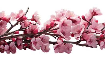 A beautiful branch of pink flowers blooming in spring against a transparent background isolated on transparent background