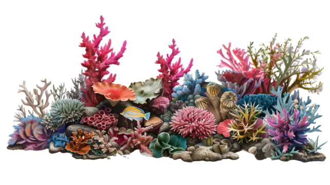 Pastel coral reef ecosystem on transparent background