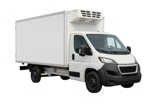 White refrigerated truck isolated on transparent background