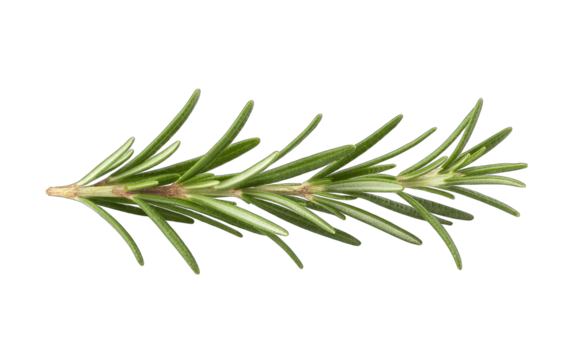 Fresh green rosemary herb sprig with needle like leaves isolated on transparent background