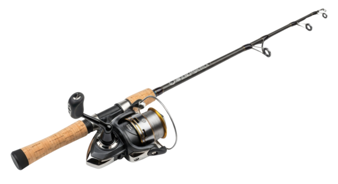Fishing rod with reel, fishing equipment isolated PNG with Transparent Background