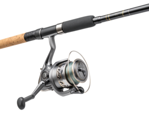 Fishing rod and reel isolated on transparent background, perfect for fishing and outdoor-related projects