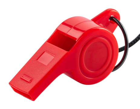 silver whistle with black cord referee official isolated on white background PNG, AI GENERATED