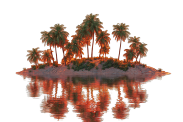 A serene landscape reflected within a circular, bronze-rimmed mirror, featuring layered mountain silhouettes, sky, water, and an island