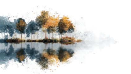 Abstract watercolor representation of a city skyline reflected in a body of water