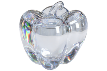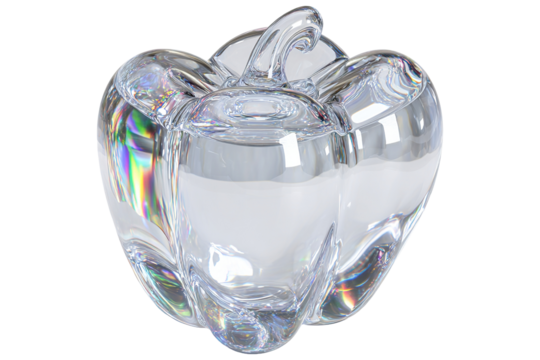Crystal glass bell pepper sculpture with hollow form and multicolor light reflections