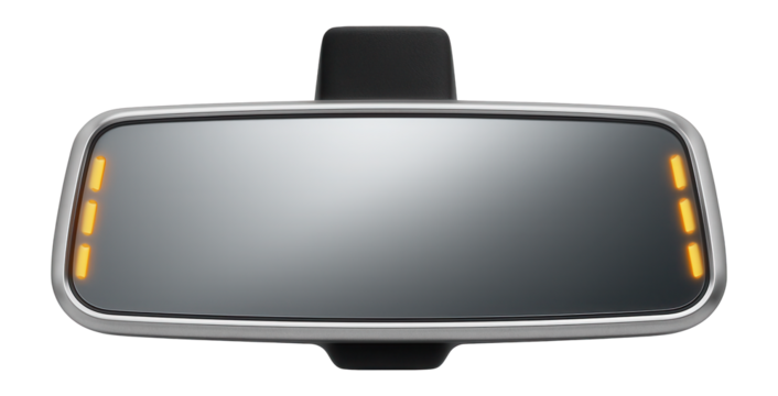 Rearview mirror parking display with integrated LED indicators and reflective glass