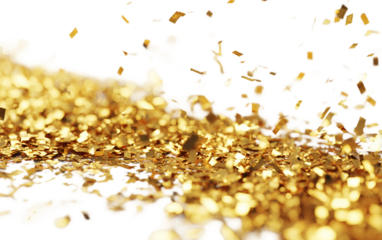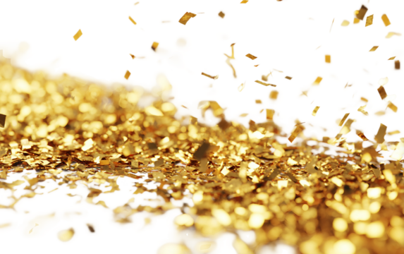 Motion blur of golden confetti highlighting celebratory mood with vibrant reflective details isolated on transparent background PNG