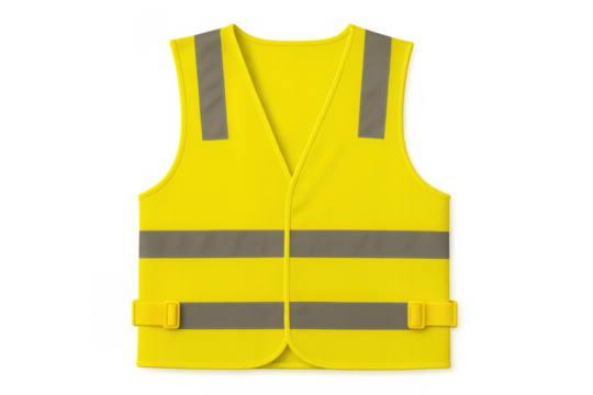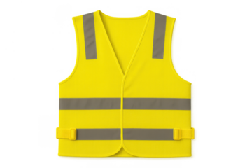Isolated folded high-visibility safety jacket with reflective strips for safety on the job site