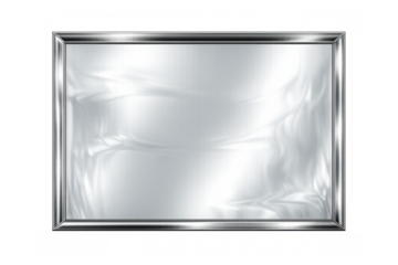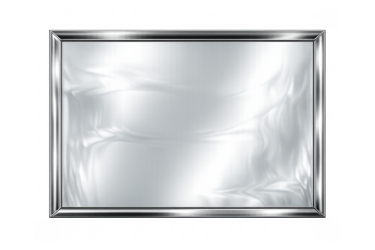 Silver chrome metallic rectangular frame with glossy reflective surface, presenting a modern blank plate design for text or logo